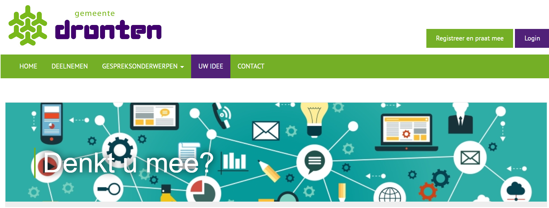 De gemeente Dronten en SIR kennen elkaar al goed. Zo maakt de gemeente Dronten al intensief gebruik van het eParticipatieplatform Dronten.Ikpraatmee.nl, waar de gemeente met meer dan 1000 inwoners het gesprek aangaat over beleid en uitvoering. Ook organiseerden we vorig jaar een Fasterclass om in co-creatie een participatieplan te maken, aan de hand van de vier sleutels van het Relevant Gesprek.