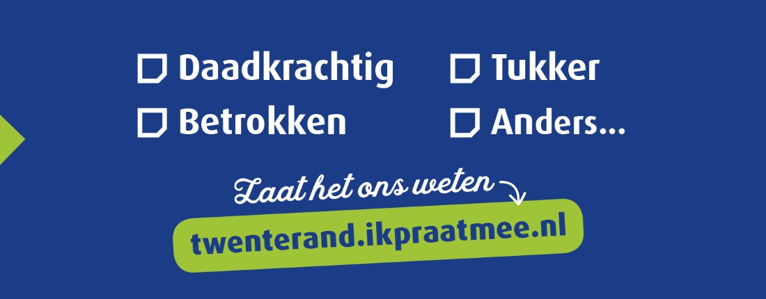 Wat verwachten zij van een nieuwe burgemeester en wat vinden ze daarbij de belangrijkste kwaliteiten? Om hierachter te komen zetten we in opdracht van de vertrouwenscommissie het online participatieplatform Twenterand.Ikpraatmee in. Het platform werd voorzien van een korte vragenlijst. Inwoners en ondernemers werden vervolgens via een compacte campagne uitgenodigd hun stem te laten horen.